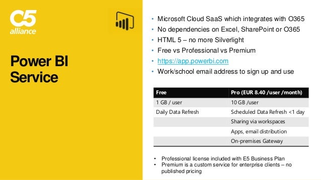 Free you have a 10 gb per pro user data storage limit. You are free to use this image on your website, templates etc. You can try power bi pro for up to two months. Although functionality is very similar both power bi desktop have 8 data refreshes a day with a minimum of 30 minutes between each. These servers are definitely high performing servers with great cores and capacity, however it is not dedicated.